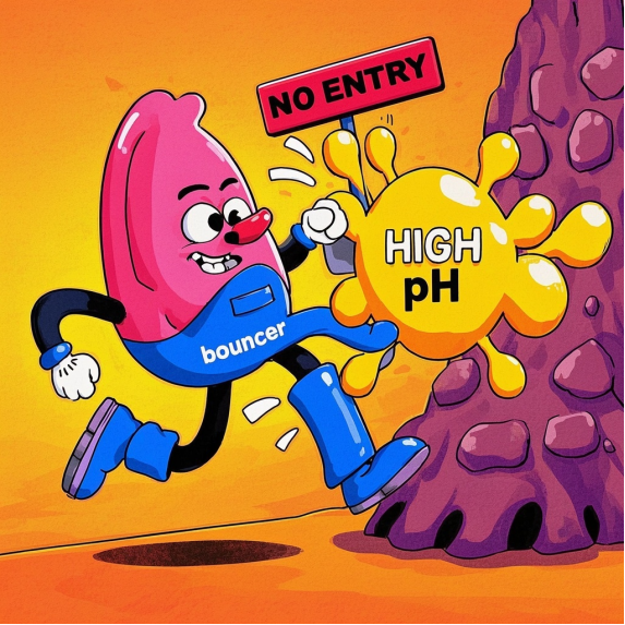 Too acidic/alkaline? Bouncer slams the door (with a burning sensation).